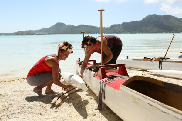 Finally, teams must assemble a Polynesian outrigger canoe and paddle down the shoreline until they reach the Pit Stop. Photo: Robert Voets/CBS.
